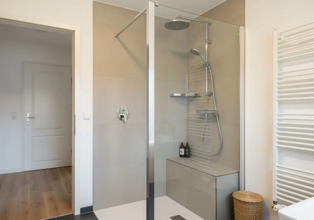 Pour ceux qui apprécient un certain confort sans vouloir installer une baignoire, la douche avec siège intégré ou rabattable offre un bon compromis. Elle permet de se détendre sous l’eau tout en conservant les avantages d’une douche.